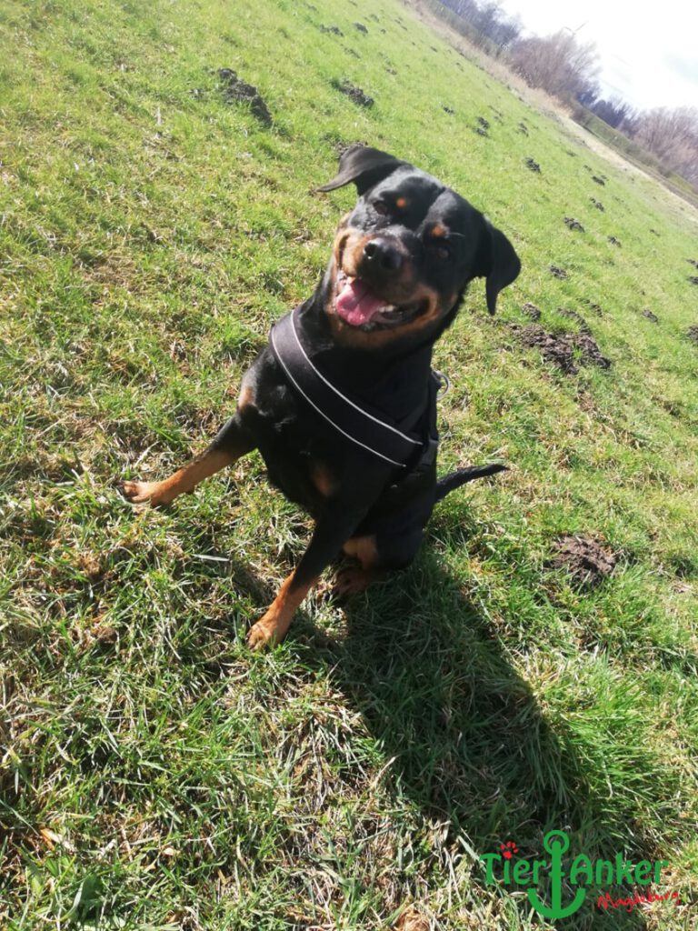 Runa ist 5 Jahre alt und leidet bereits an Arthrosen – Gelenkerkrankungen. Deshalb hat ihr ihre Tierärztin das Spezialfutter Mobility verschrieben. Damit geht es Runa etwas besser. Leckerlis sind aber leider tabu für sie.