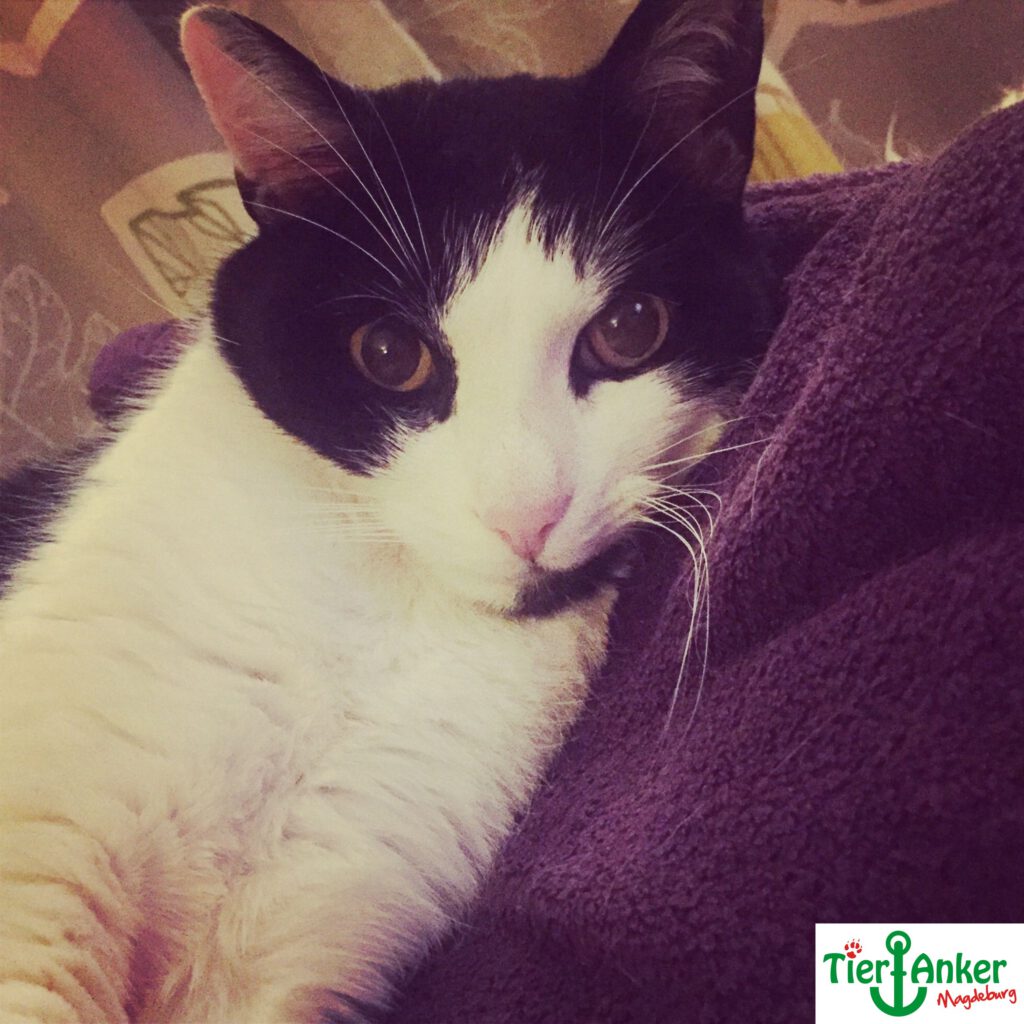 Kasimir ist ein hübscher, schwarz-weißer Kater, der mit seinen 14 Jahren der „Jüngste“ in seinem Rudel ist.